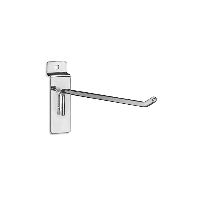 Gancho diseñado para paneles de lama con grosor de 9 mm, disponible en varias medidas. Ideal para una exhibición segura y organizada en tiendas y escaparates.