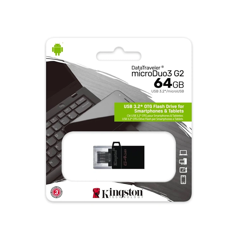 - Ideal para almacenar archivos voluminosos guardados durante sus desplazamientos, la tecnología DTDUO3G2 incorpora la funcionalidad «Conectar y listo» (plug-and-play) para las tabletas y los teléfonos inteligentes Android que carecen de puertos microSD, a un precio por GB menor que el del almacenamiento adicional incorporado en un dispositivo móvil.