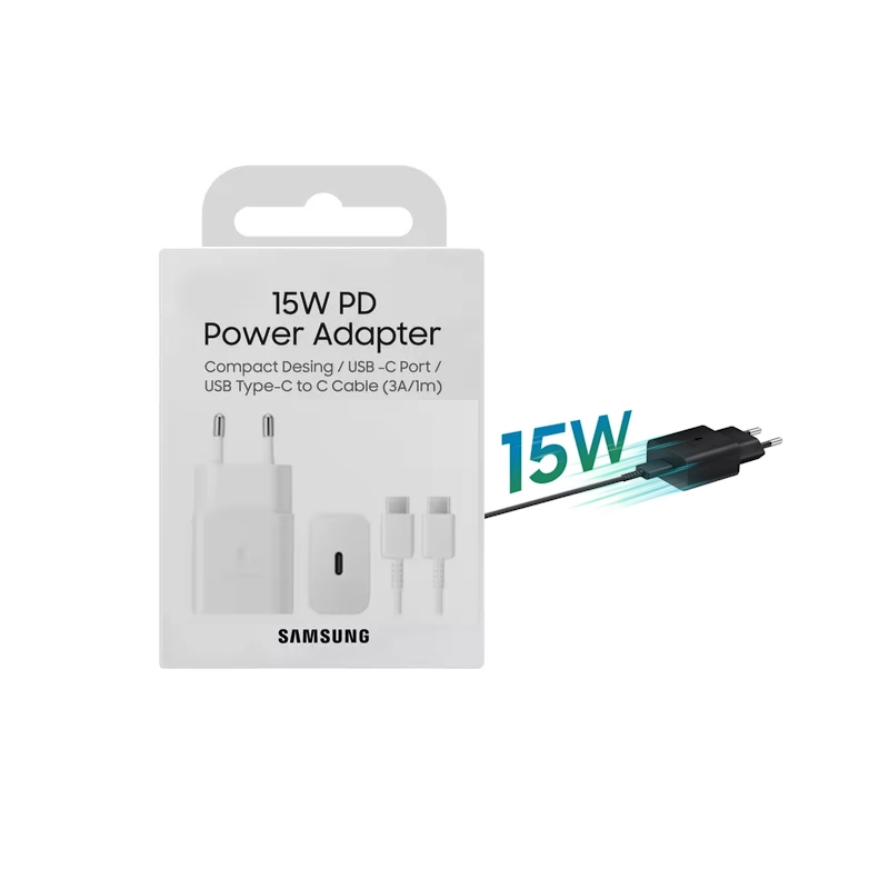 Cargador de Pared Samsung EP-T1510XWE / 1xUSB Tipo-C + Cable USB Tipo-C/ 15W
