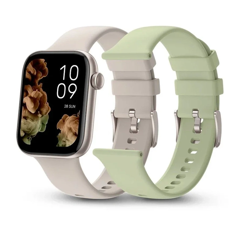 Smartwatch con pantalla amoled de 1,78”, llamadas Bluetooth, registro de más de 100 deportes, corona funcional y dos colores de correa para adaptarlo a tu look.